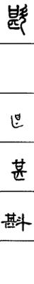 从上到下依次是小篆、甲骨文、金文、古玺及战国文字、缪篆及汉代文字、鸟虫篆。