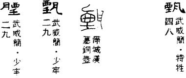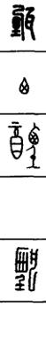 从上到下依次是小篆、甲骨文、金文、古玺及战国文字、缪篆及汉代文字、鸟虫篆。