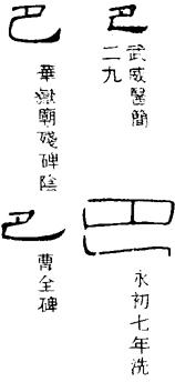 〈辨〉巴字篆书象蟒蛇之形,传说巴为古代一种食象大蛇◇巴与巳只差上部中间一竖,俗写多不完全封口,作巴,误。