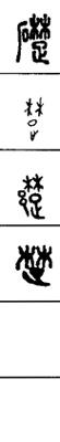 从上到下依次是小篆、甲骨文、金文、古玺及战国文字、缪篆及汉代文字、鸟虫篆。