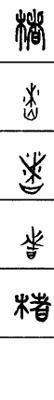 从上到下依次是小篆、甲骨文、金文、古玺及战国文字、缪篆及汉代文字、鸟虫篆。