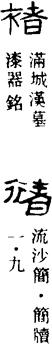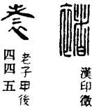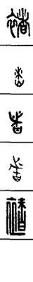 从上到下依次是小篆、甲骨文、金文、古玺及战国文字、缪篆及汉代文字、鸟虫篆。