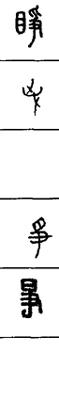 从上到下依次是小篆、甲骨文、金文、古玺及战国文字、缪篆及汉代文字、鸟虫篆。