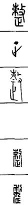 从上到下依次是小篆、甲骨文、金文、古玺及战国文字、缪篆及汉代文字、鸟虫篆。