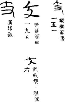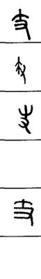 从上到下依次是小篆、甲骨文、金文、古玺及战国文字、缪篆及汉代文字、鸟虫篆。