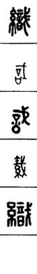从上到下依次是小篆、甲骨文、金文、古玺及战国文字、缪篆及汉代文字、鸟虫篆。