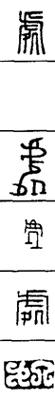 从上到下依次是小篆、甲骨文、金文、古玺及战国文字、缪篆及汉代文字、鸟虫篆。