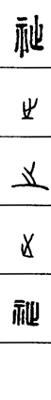 从上到下依次是小篆、甲骨文、金文、古玺及战国文字、缪篆及汉代文字、鸟虫篆。