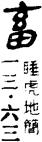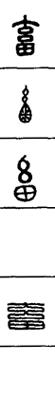 从上到下依次是小篆、甲骨文、金文、古玺及战国文字、缪篆及汉代文字、鸟虫篆。