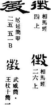 P.2305《妙法蓮華經講經文》:“風吹叢竹兮韻合宮商,鶴笑孤松兮聲和角徴。”按:此字與“徵求”之“徵”同形,可參閱該條各字形。