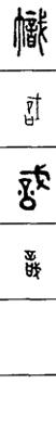 从上到下依次是小篆、甲骨文、金文、古玺及战国文字、缪篆及汉代文字、鸟虫篆。