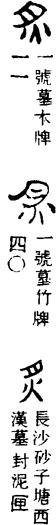 从上到下依次是小篆、甲骨文、金文、古玺及战国文字、缪篆及汉代文字、鸟虫篆。