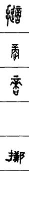 从上到下依次是小篆、甲骨文、金文、古玺及战国文字、缪篆及汉代文字、鸟虫篆。