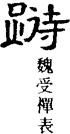 ①止,停止。《后汉书·天文志下》:“大将军何进令司隶校尉袁绍私募兵千余人,阴跱洛阳城外。”(司隶校尉:武官名。阴:暗中。)②立,站立。《淮南子·修务》:“七日七夜至于秦庭,鹤跱而不食,昼吟宵哭。”(庭:通“廷”,宫廷。鹤跱:像鹤一样站立着。)引申为对峙。《三国志·吴书·陆逊传》:“方今英雄棋跱。”(棋跱:像下棋一样对峙。)③储备。《后汉书·陈宠传附陈忠》:“多设储跱。”