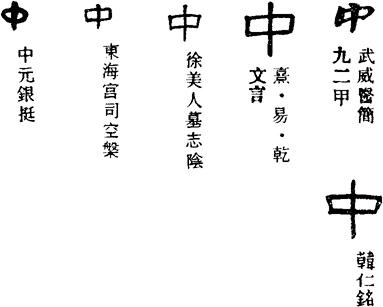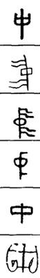 〈辨〉中字篆书略同楷书,一竖表示旗杆等物,一圈标志它的中间部位。也有人说一圈表示圆形物,一竖指示它的中心◇中字有阴平、去声二读,大抵动词字读去声,其他读阴平。