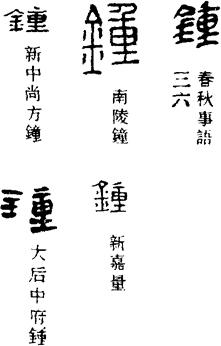 zhōng 《广韵》:当也,酒器也。又量名,左传曰,釜十则鍾。 职容切 通合三平鍾章