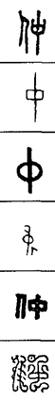 从上到下依次是小篆、甲骨文、金文、古玺及战国文字、缪篆及汉代文字、鸟虫篆。