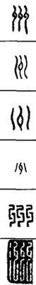从上到下依次是小篆、甲骨文、金文、古玺及战国文字、缪篆及汉代文字、鸟虫篆。