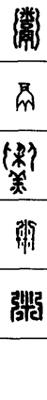 从上到下依次是小篆、甲骨文、金文、古玺及战国文字、缪篆及汉代文字、鸟虫篆。