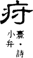 甲骨文的疛字,从疒从又,象人卧床上以手抚腹之形,表示人小腹疼痛之意,其本义指腹病,肚痛。小篆疛字从疒从寸,盖因篆书寸、又都象手形,故从寸与从又,往往可以相通。《说文解字》:“疛,小腹病。从疒,肘省声。”则以寸为肘之省,而肘为疛字声符。