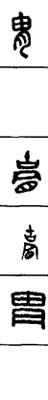 从上到下依次是小篆、甲骨文、金文、古玺及战国文字、缪篆及汉代文字、鸟虫篆。