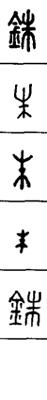 从上到下依次是小篆、甲骨文、金文、古玺及战国文字、缪篆及汉代文字、鸟虫篆。