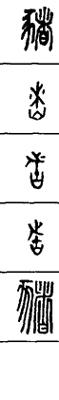从上到下依次是小篆、甲骨文、金文、古玺及战国文字、缪篆及汉代文字、鸟虫篆。