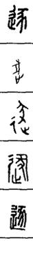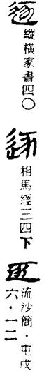 从上到下依次是小篆、甲骨文、金文、古玺及战国文字、缪篆及汉代文字、鸟虫篆。