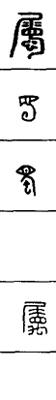从上到下依次是小篆、甲骨文、金文、古玺及战国文字、缪篆及汉代文字、鸟虫篆。