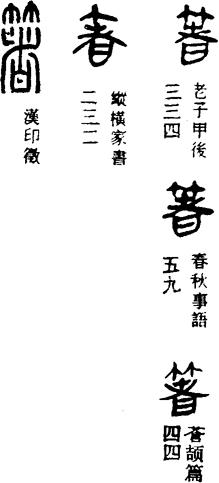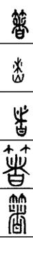 从上到下依次是小篆、甲骨文、金文、古玺及战国文字、缪篆及汉代文字、鸟虫篆。