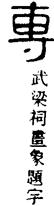 象纺砖(又称纺锤)之形,纺砖上有线缠绕,表示以手旋转纺砖盘线之意,其本义为盘旋转轴。在汉字中,凡从专的字多有盘旋,转动,转递等义,如抟、团(圑)、转、传等。字又用作名词,也指纺砖。如《说文解字》:“专,六寸簿也。一曰:专,纺专。”纺专即纺砖。此字后来多借用为单独、单纯、独一等义。