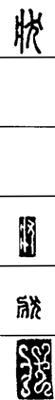 从上到下依次是小篆、甲骨文、金文、古玺及战国文字、缪篆及汉代文字、鸟虫篆。