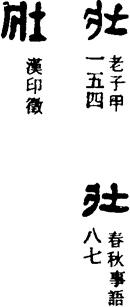 (一)zhuàng 《广韵》:大也。 侧亮切 宕开三去漾庄