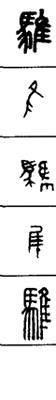 从上到下依次是小篆、甲骨文、金文、古玺及战国文字、缪篆及汉代文字、鸟虫篆。