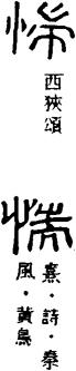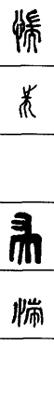 从上到下依次是小篆、甲骨文、金文、古玺及战国文字、缪篆及汉代文字、鸟虫篆。