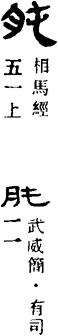 ㈡chún ①〔引〕古代祭祀所用牲后体的一部分。《仪礼·特牲馈食礼》:“右肩臂肫胳。”②〔通〕通“纯”。整体。《仪礼·士昏礼》:“腊一,肫。”郑玄注:“腊,兔腊也。肫或作纯。纯,全也。”
