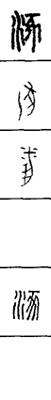 从上到下依次是小篆、甲骨文、金文、古玺及战国文字、缪篆及汉代文字、鸟虫篆。