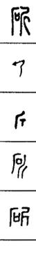 从上到下依次是小篆、甲骨文、金文、古玺及战国文字、缪篆及汉代文字、鸟虫篆。