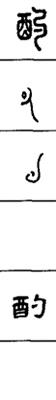 古文字字形象盛酒之器,在古文字文献中代表酒。酉字用为偏旁,表示与酒有关的意思,有时也作声符。
