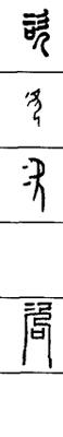 从上到下依次是小篆、甲骨文、金文、古玺及战国文字、缪篆及汉代文字、鸟虫篆。