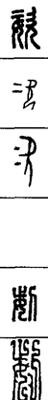 从上到下依次是小篆、甲骨文、金文、古玺及战国文字、缪篆及汉代文字、鸟虫篆。