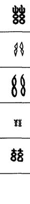从上到下依次是小篆、甲骨文、金文、古玺及战国文字、缪篆及汉代文字、鸟虫篆。