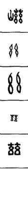 从上到下依次是小篆、甲骨文、金文、古玺及战国文字、缪篆及汉代文字、鸟虫篆。