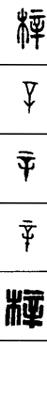 从上到下依次是小篆、甲骨文、金文、古玺及战国文字、缪篆及汉代文字、鸟虫篆。