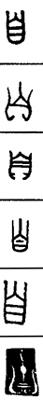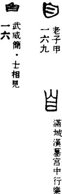 从上到下依次是小篆、甲骨文、金文、古玺及战国文字、缪篆及汉代文字、鸟虫篆。