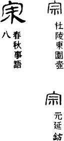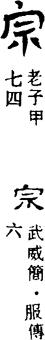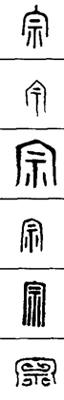 【说明】“宗”为会意字,从“宀”从“示”(木主),放有木主的房屋,即祖庙。参附录三。