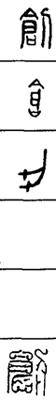从上到下依次是小篆、甲骨文、金文、古玺及战国文字、缪篆及汉代文字、鸟虫篆。