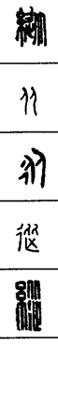 从上到下依次是小篆、甲骨文、金文、古玺及战国文字、缪篆及汉代文字、鸟虫篆。