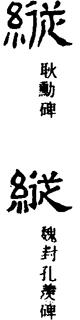 zòng 《广韵》:放纵。说文,缓也。一曰舍也。 子用切 通合三去用精 又《广韵》:纵横也。 即容切 通合三平鍾精
