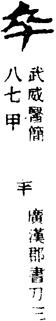 〈辨〉卒字甲骨文从衣从爻,爻象示衣上有题识符号。这种衣服是古时隶役穿的,所以,隶役称为卒。金文、篆书变为指事字,从衣从一画,一斜画表示此种衣服与寻常的衣服有别。楷书作卒,异体作